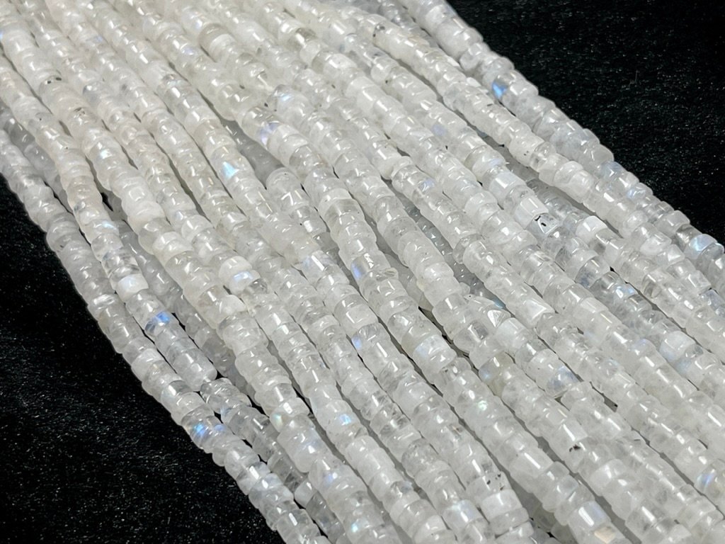 Gemstone : Rainbow Moonstone Beads Shape: Heishi Tyre Beads Size : 4-5-6-7-8mm Select size in checkout Strands Length: 13-14 inch long