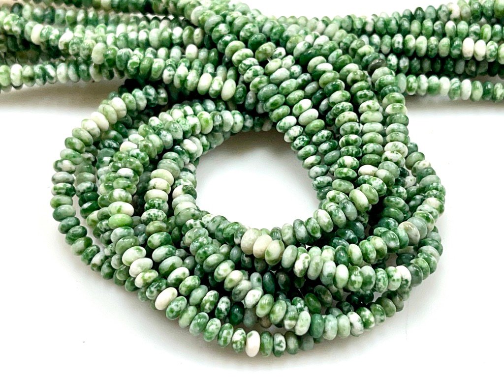 Gemstone - Green Jasper Strand length - 15-16 Inch Long Beads Size 4mm Shape Smooth Rondelle / Heishi Hole Size 1mm Approx 150 beads in a strand.