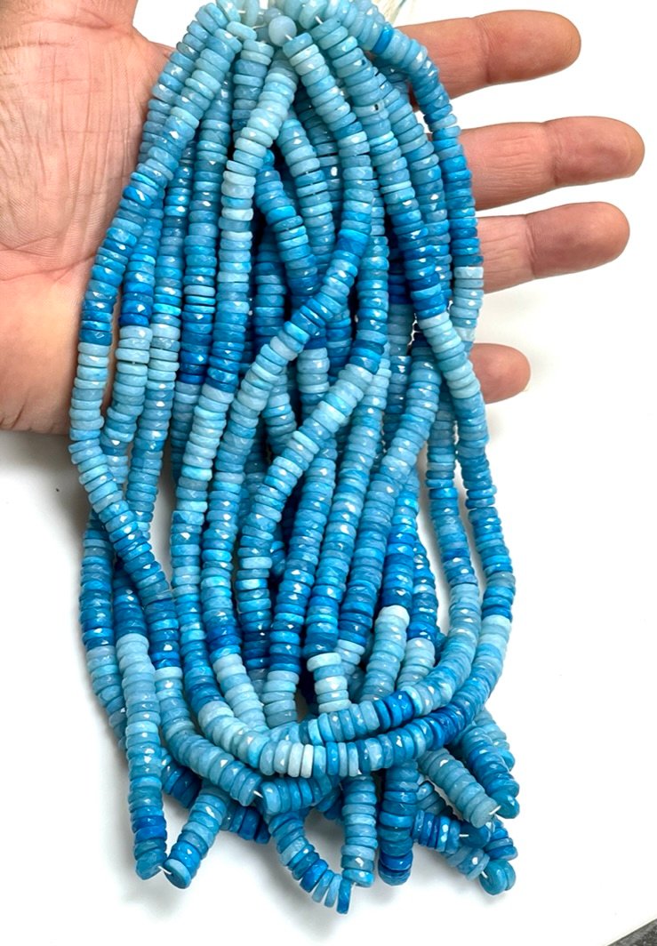 Gemstone : Blue shaded Peruvian Opal Beads Shape: Faceted Heishi / Disc / Tyre Beads Size 6-8mm Strands Length 8 inch long or 16 Inch Long, select in checkout
