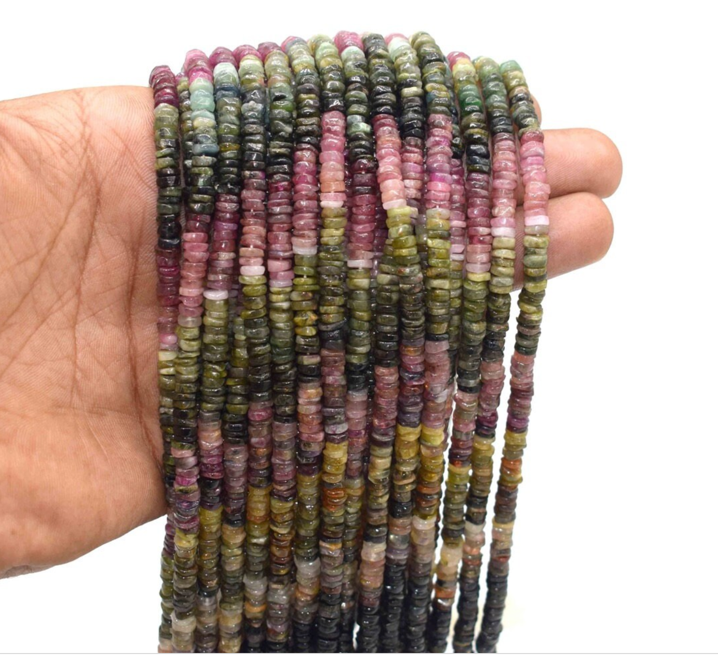 Tourmaline natural gemstone heishi tire shape beads strands 13-14 inch long